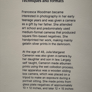 It's interesting how Francesca Woodman used photography to create dream-like photographs, many lacking sharp focus or are under or over-exposed. This added a new dimension to my relationship with the photographs displayed, instigating me to imagine what might have been there, helping me to. create a whole new experience also based on my imagination of a parallel print displayed only in my mind. Instead of focusing on artists' life stories, the curators emphasize their imaginative strategies.